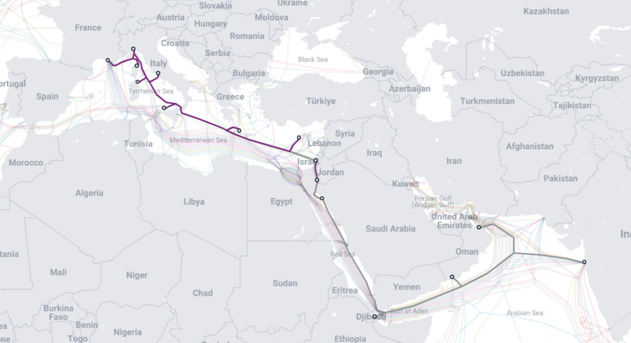 Участок кабеля Raman, названный в честь индийского лауреата Нобелевской премии Венката Рамана и разрабатываемый компанией Omantel, начинается в Мумбаи, далее он будет проложен по дну Индийского океана и по суше через пока не указанную страну (скорее всего, Саудовскую Аравию), вплоть до иорданского порта Акаба.