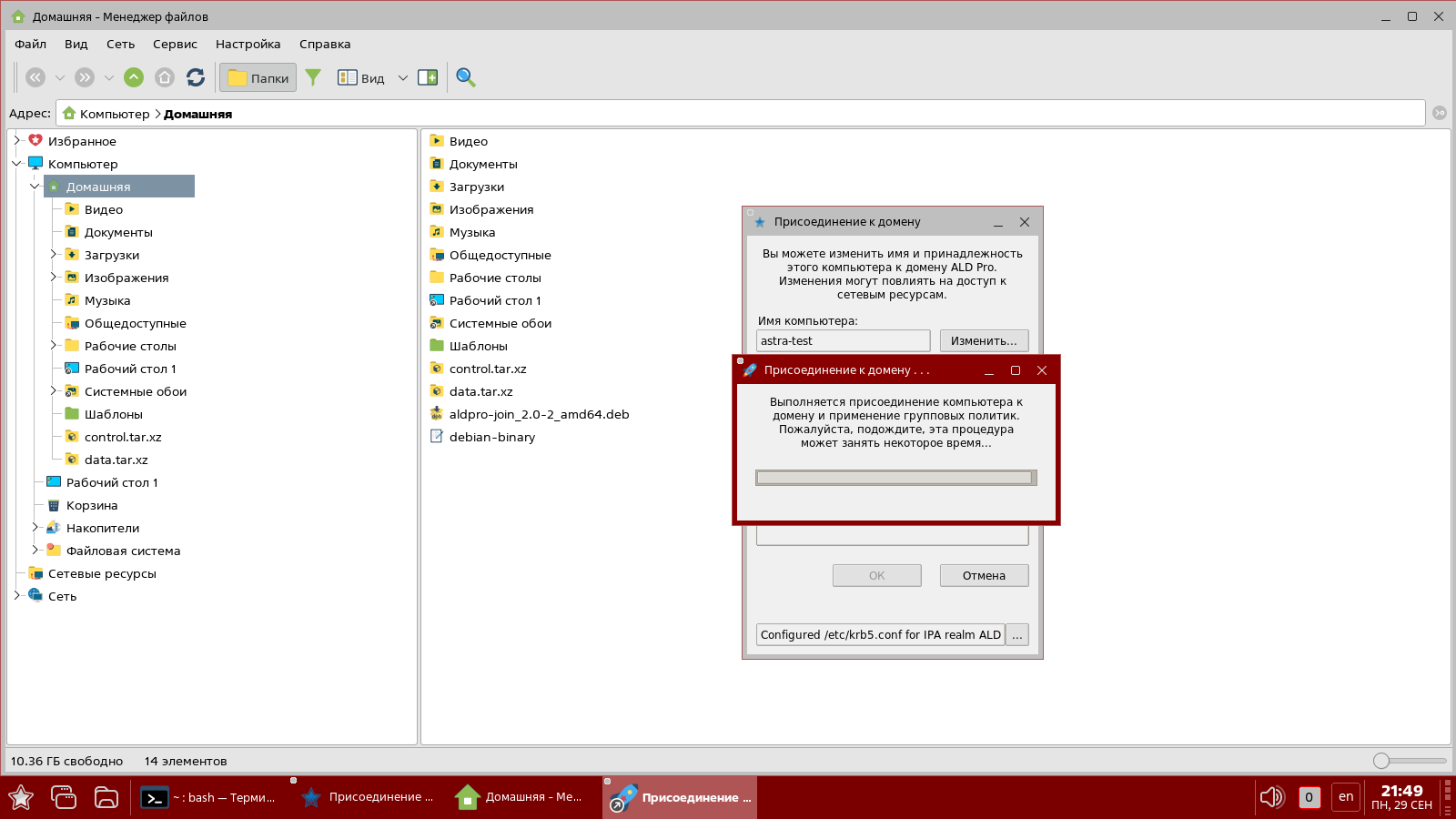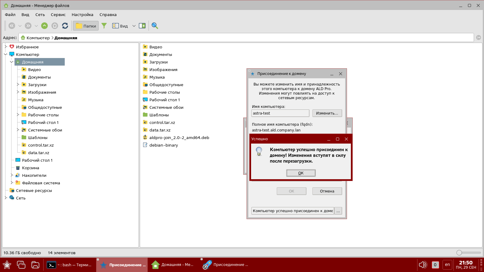Наконец, отдельного внимания заслуживает утилита aldpro-join. Она значительно упрощает ввод нового компьютера под управлением Astra Linux в домен. От администратора требуются только его логин и пароль да имя нужного домена, а всё остальное утилита сделает сама. Не то чтобы без GUI нельзя обойтись, нет, консольная версия не менее прекрасно справляется со своей работой. Однако для новичков в мире Linux, перешедших из экосистемы Microsoft, это полезное подспорье. Компания в целом организовала различные курсы по обучению и переподготовке Windows-специалистов с последующей сертификацией, чтобы людям было проще провести миграцию на отечественный продукт. Кроме того, «Группа Астра» постоянно совершенствует документацию, в том числе справочные материалы, встроенные непосредственно в обновлённый портал управления ALD Pro.