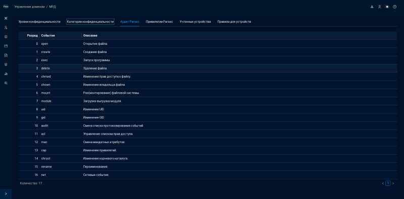 Но этим дело не ограничивается. В Astra Linux реализован мандатный контроль доступа с аудитом посредством отдельной службы PARSEC, да ещё и сертифицированный ФСТЭК, ФСБ и Минобороны России, что позволяет добиться максимального уровня защищённости при работе с «чувствительной» информацией. Это касается как самих хостов, где развёрнут ALD Pro, так и клиентских машин и пользователей, для которых необходимые настройки автоматически применяются в рамках групповых политик. Администраторы (и только они, в отличие от традиционного дискреционного доступа, когда права могут раздавать и обычные пользователи — владельцы файлов) задают уровни и категории конфиденциальности (МКЦ/МРД) и назначают допустимые значения конкретным сотрудникам, для которых при входе применяются разрешённые метки.