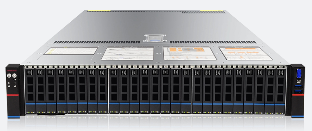 Модель Inferit UR2X2G4V1-D24 предназначена для комплексных вычислений, виртуализации, облачных сервисов и работы с большими данными. Во фронтальной части расположены 24 отсека для SFF-накопителей SAS/SATA/NVME с поддержкой горячей замены. Доступны два слота PCIe 5.0 x16 и четыре слота PCIe 5.0 x8 для карт полной высоты, а также два разъёма OCP 3.0 (PCIe 5.0 x8). Предусмотрены выделенный сетевой порт управления 1GbE (RJ45), последовательный порт, разъёмы USB 3.0 и D-Sub. Установлены два блока питания мощностью 1300 Вт с сертификатом 80 Plus Platinum.