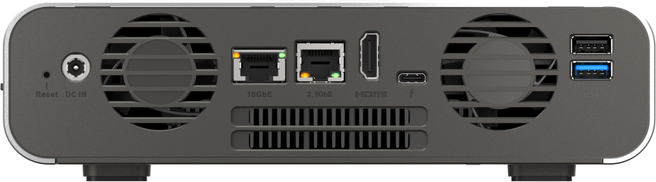 Хранилище оснащено сетевыми портами 2.5GbE и 10GbE, интерфейсом HDMI 1.4b, разъёмом USB 2.0, двумя портами USB 3.2 Gen2, а также двумя портами Thunderbolt 4, которые можно использовать для прямого подключения к рабочим станциям под управлением Windows и macOS.