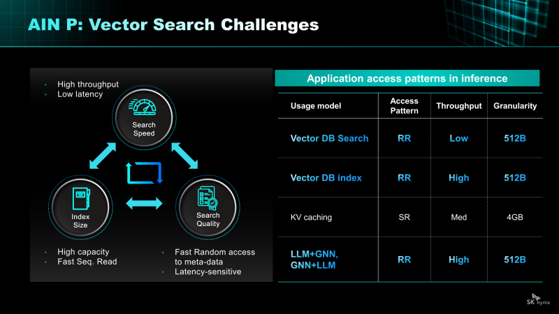 AIN P (Performance) — это решение для эффективной обработки больших объёмов данных, генерируемых в рамках масштабных рабочих нагрузок ИИ-инференса. Продукт значительно повышает скорость обработки и энергоэффективность, минимизируя узкие места между хранилищем и ИИ-операциями. SK hynix разрабатывает NAND-память и контроллеры с новыми возможностями и планирует выпустить образцы к концу 2026 года.
