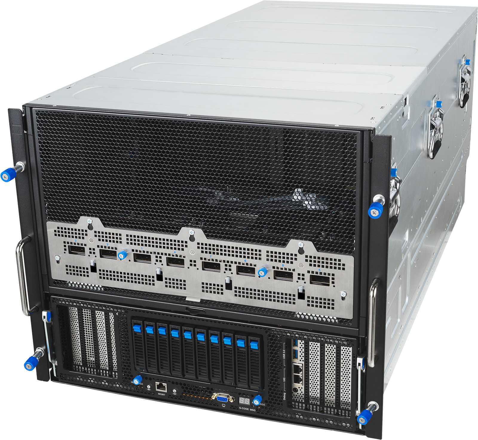 Система имеет архитектуру 8-GPU (NVIDIA HGX B300 288GB 8-GPU). Задействованы сетевые адаптеры NVIDIA ConnectX-8 и DPU NVIDIA BlueField-3. Реализованы два сетевых порта 10GbE с разъёмами RJ45 на основе контроллера Intel X710-AT2 и выделенный сетевой порт управления (RJ45). Питание обеспечивают 10 блоков мощностью 3200 Вт с сертификатом 80 PLUS Titanium. Применяется воздушное охлаждение; диапазон рабочих температур — от +10 до +35 °C.