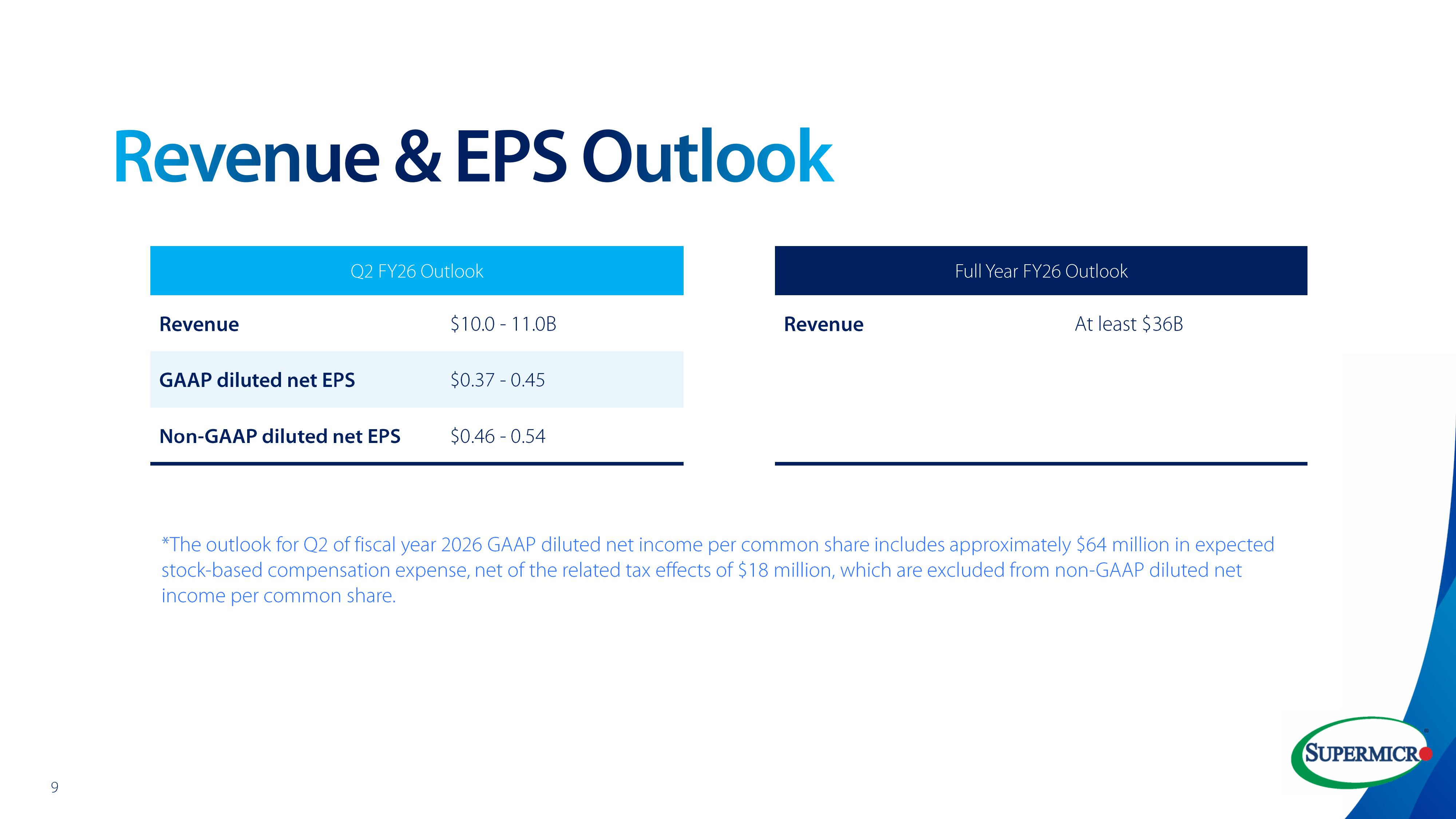 Во II квартале 2026 финансового года компания прогнозирует выручку в размере $10,0–11,0 млрд, что выше консенсус-прогноза аналитиков в $7,83 млрд, согласно LSEG. Согласно прогнозу компании, скорректированная прибыль на разводнённую акцию составит от $0,46 до $0,54. Кроме того, Supermicro повысила свой прогноз выручки на весь 2026 финансовый год до $36 млрд с предыдущего прогноза в $33 млрд.