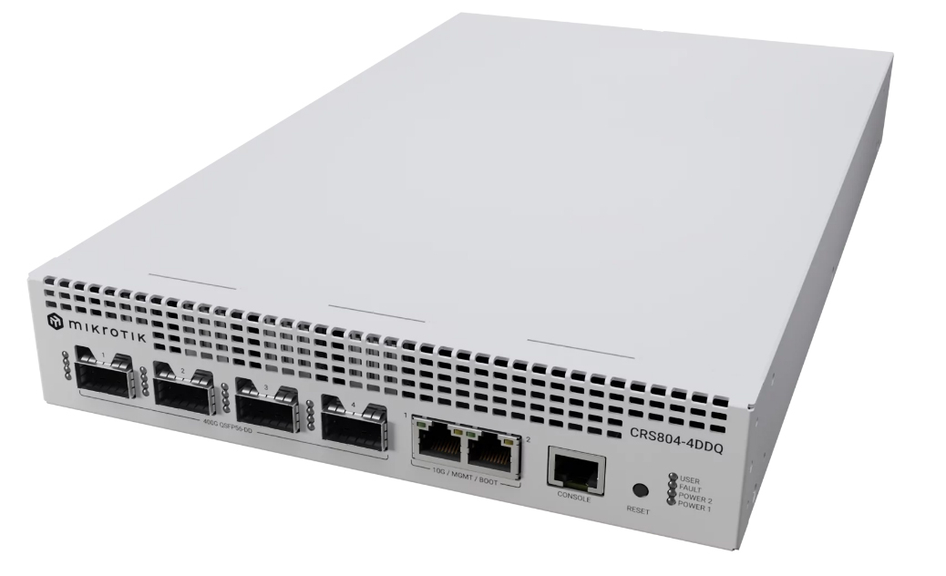 Компания MikroTik расширила ассортимент коммутаторов, анонсировав компактную модель CRS804 DDQ, ориентированную на сравнительно небольшие по масштабу инфраструктуры ИИ. Новинка выполнена в форм-факторе 1U половинной ширины, благодаря чему в серверной стойке бок о бок могут размещаться два устройства.