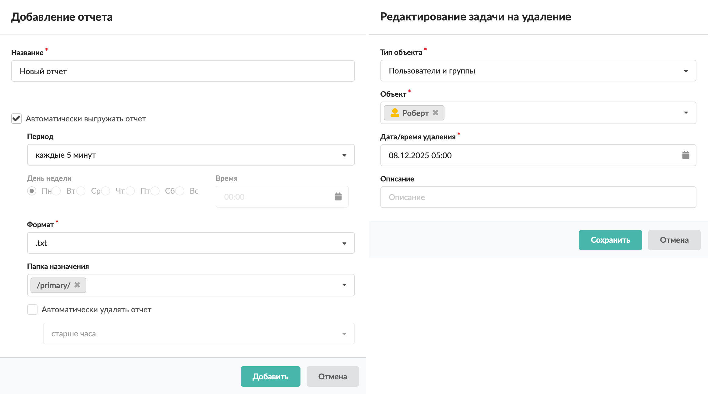 Реализована возможность автоматической выгрузки отчётов за требуемый период в файловое хранилище, а также добавлена новая служба — планировщик, удаляющая объекты системы по расписанию. Данные изменения позволяют оптимизировать повседневную работу системного инженера, избавив его от рутинных задач.
