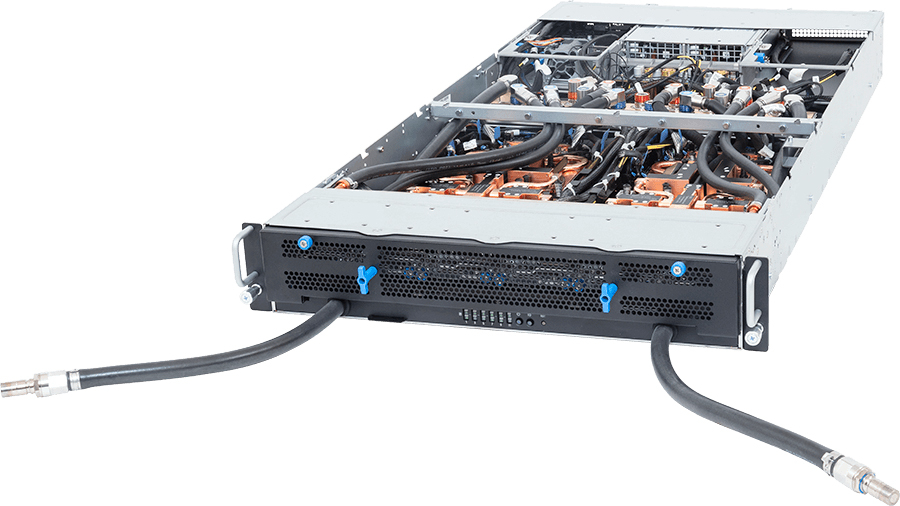 Доступны четыре сетевых порта OSFP InfiniBand XDR на 800 Гбит/с или два порта Ethernet на 400 Гбит/с на базе NVIDIA ConnectX-8 SuperNIC. Кроме того, имеется порт 1GbE на основе Intel I210-AT и выделенный сетевой порт управления 1GbE. В оснащение входит контроллер ASPEED AST2600. Во фронтальной части расположены восемь посадочных мест для SFF-накопителей с интерфейсом PCIe 5.0 (NVMe) с жидкостным охлаждением. Опционально может быть установлен DPU NVIDIA BlueField-3.