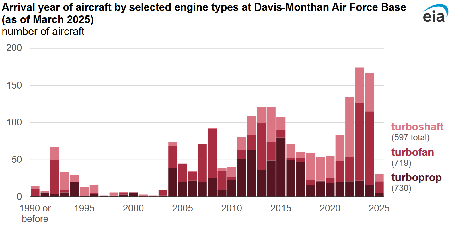 В докладе указано, что на авиабазе Davis-Monthan Air Force Base в Аризоне имеются старые самолёты, двигатели которых и предполагается использовать в качестве элементов электрогенераторов. На этом авиационном кладбище, по данным EIA, имеются около 4 тыс. машин, теоретически способных обеспечить до 40 ГВт генерирующих мощностей. Однако это именно теоретический максимум, без учёта целесообразности, себестоимости или эксплуатационных ограничений. В документе упоминается несколько проблем с развёртыванием, включая сомнительное состояние авиадвигателей, которые в среднем хранятся более десятилетия. Имеются логистические, бюрократические и иные препоны.