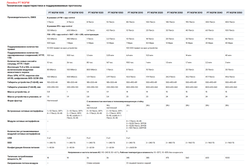 «На сегодняшний день PT NGFW 3050 — это самый производительный, сертифицированный во ФСТЭК, российский межсетевой экран нового поколения на рынке, способный детально анализировать трафик на скоростях магистральных каналов», — отмечает Positive Technologies.