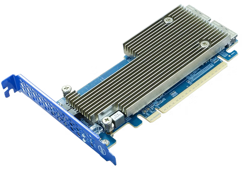 Модель Rocket 7624A получила два коннектора MCIO 8i (SFF-1016; по 8 линий), что допускает прямое подключение четырёх устройств (до 16 накопителей через бэкплейн). Задействован коммутационный чип Broadcom PEX89048, а заявленная пропускная способность достигает 32 Гбайт/с в конфигурации с четырьмя NVMe SSD. Адаптер получил низкопрофильное исполнение и крупный радиатор охлаждения, который накрывает практически всю плату. Заявлена совместимость с накопителями U.2, U.3, E3.S и E1.S. Карта рассчитана прежде всего на рабочие станции и периферийные серверы.