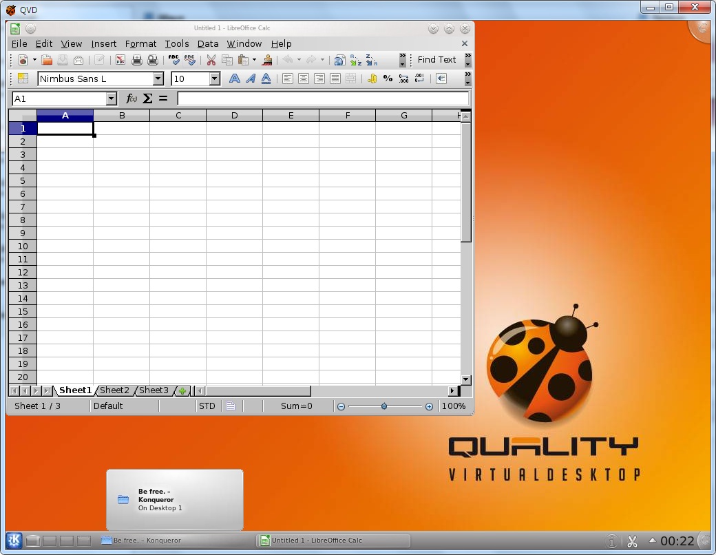 Пока устанавливается и автоматически настраивается базовая система, не помешает сходить на страницу загрузок, скачать с неё готовые образы ОС (OSI) и установить их для Windows или Linux (в новой версии появится Android-приложение). Проект QVD рассчитан на максимально полное использование имеющихся аппаратных ресурсов для обслуживания как можно большего числа одновременно подключённых пользователей. Поэтому, в частности, рекомендуется создавать базовые образы ОС с набором нужного ПО, с которых запускаются пользовательские ВМ. При этом домашние каталоги пользователей и опционально сессии сохраняются отдельно. В отличие от Ulteo, QVD всё же ориентирован на Linux-системы.