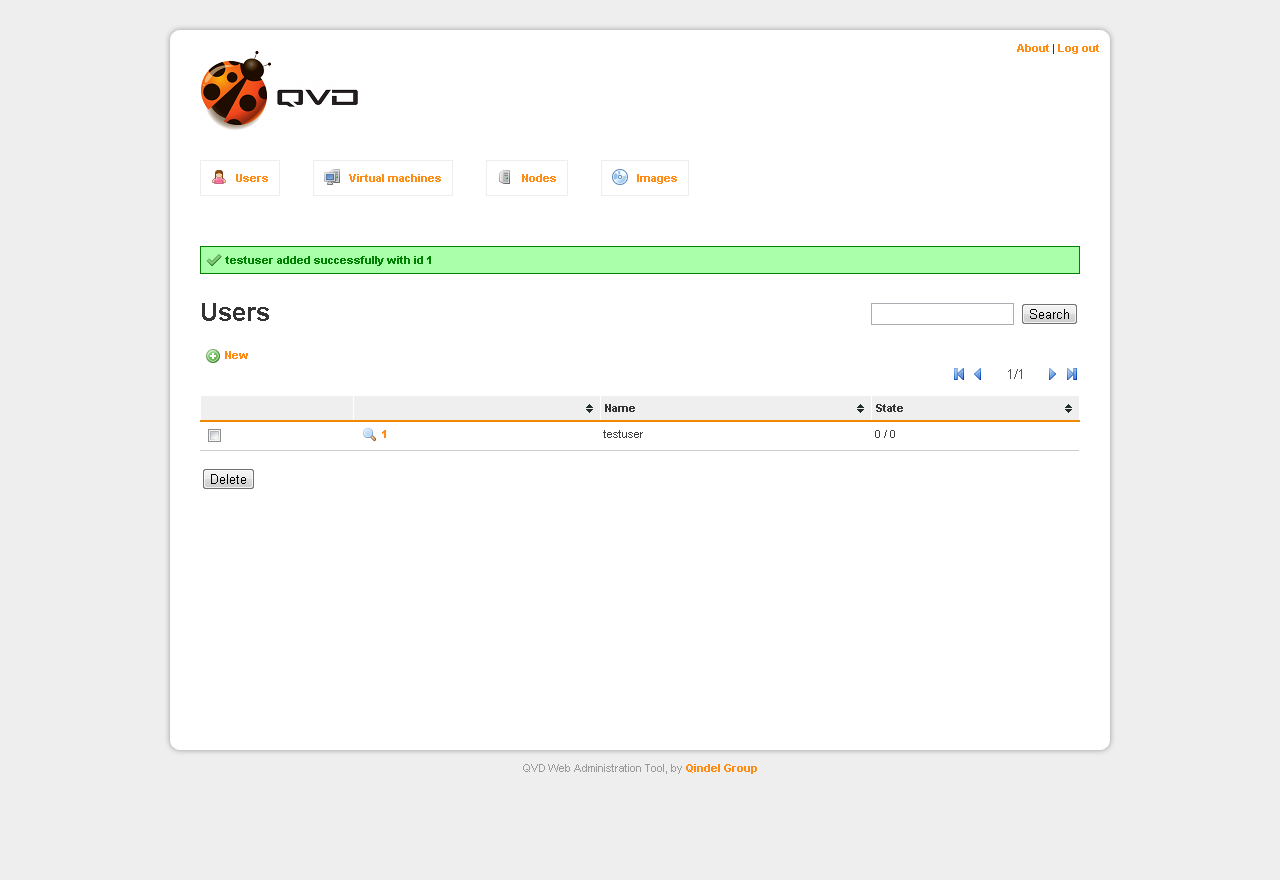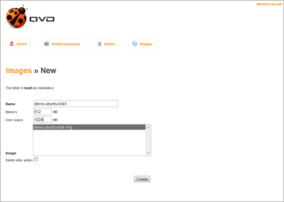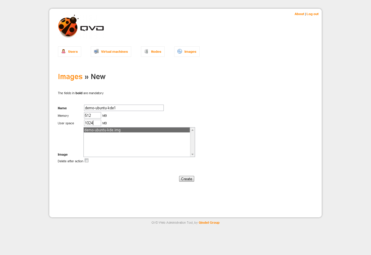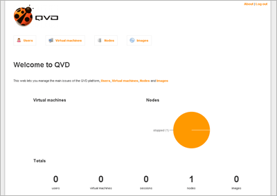 После завершения установки веб-интерфейс будет доступен по адресу http://IP-адрес-сервера:3000/, а логин и пароль для него, как обычно, admin. Веб-интерфейс не сказать, чтобы богат опциями, но всё основные функции в нём есть. Конечно, набор утилит QVD для командной строки позволяет намного больше, но для первого знакомства хватит и веб-морды. Итак, первым делом необходимо создать нового пользователя и задать для него пароль. В дальнейшем можно будет подключить авторизацию через LDAP или OpenSSO/OpenAM. Также надо убедиться, что служба qvd-node работает, и если это не так — запустить её. Скачанный демообраз ОС придётся распаковать и поместить в /var/lib/qvd/storage/staging. Вообще в /var/lib/qvd/storageлежат образы OSI, образы виртуальных машин, домашние каталоги пользователей и временные файлы сессий, поэтому вполне резонно поместить его в быстрое внешнее хранилище.