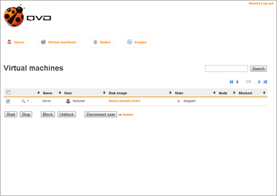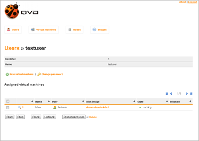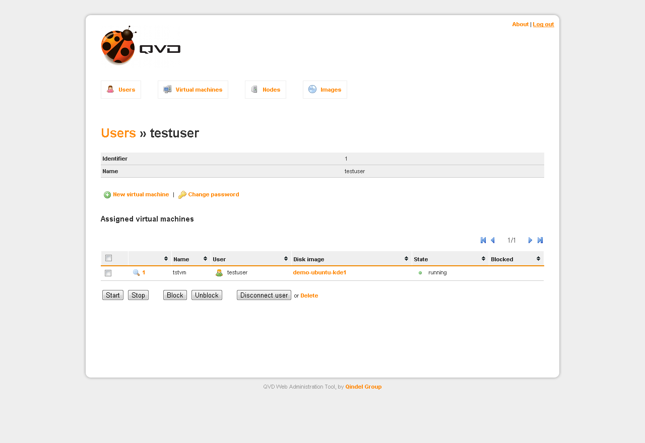 Осталось создать ВМ в настройках пользователя и запустить её. Если имеется несколько физических узлов, то QVD автоматически выберет наименее загруженный и запустит ВМ именно на нём.