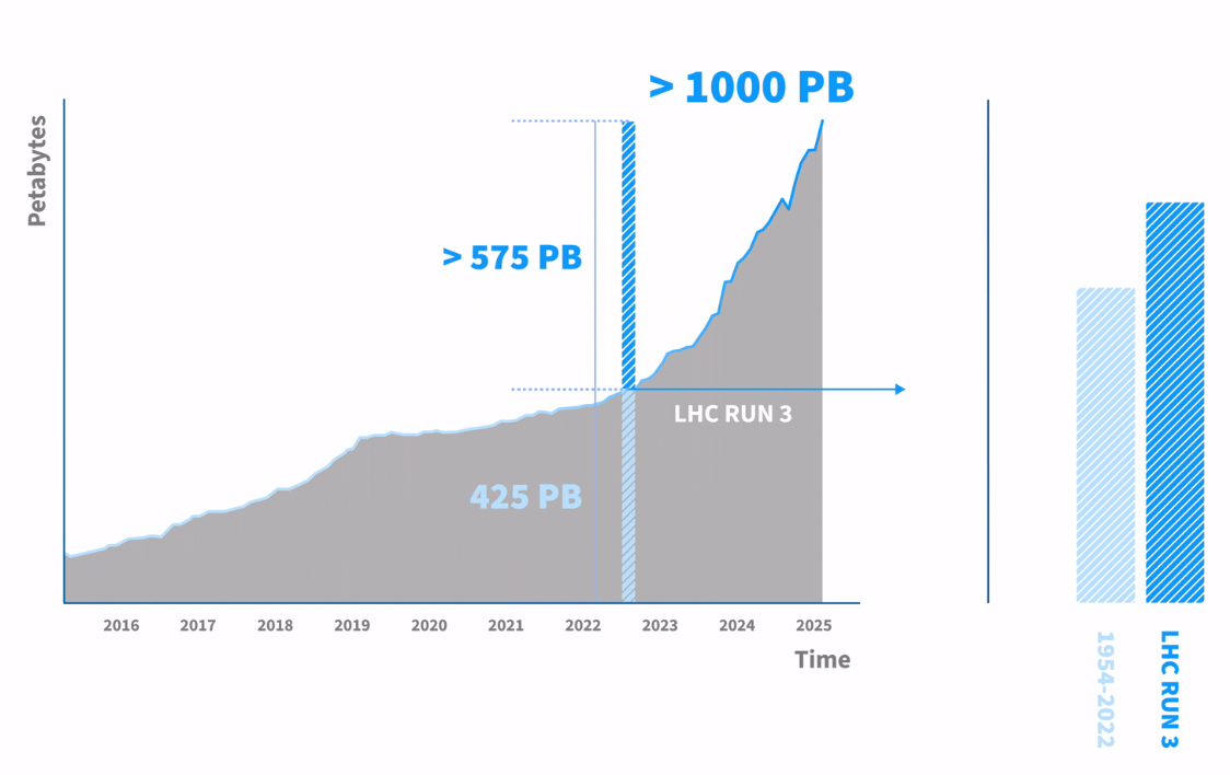 CERN накопила экзабайт данных от Большого адронного коллайдераЕвропейская организация по ядерным исследованиям (CERN) сообщила о том, что в её системе хранения данных накоплен 1 Эбайт (1 млн Тбайт) экспериментальной информации, поступившей от Большого адронного коллайдера (БАК) — крупнейшего в мире ускорителя частиц протяжённостью около 27 км, расположенного под землёй на границе Швейцарии и Франции. БАК каждую секунду сталкивает миллиарды протонов, в результате чего генерируются колоссальные потоки информации. Для её предварительной обработки используется высокоселективная система фильтрации (так называемый триггер), которая отсеивает львиную долю данных, собранных детекторами. Оставшаяся часть сведений, представляющих наибольшую ценность, поступает в хранилище CERN для последующего анализа. «Мы достигли рубежа в 1 Эбайт, что является важной вехой проекта, но на этом всё не заканчивается. Это всего лишь 10 % от того, что нам предстоит хранить и обрабатывать в последующие 10 лет», — говорит Якуб Мосцицки (Jakub Mościcki), руководитель группы хранения и управления данными в CERN. Накопление научных сведений имеет огромное значение для проекта БАК, поскольку анализ может проводиться спустя долгое время после сбора показателей — иногда через десятилетия после проведения экспериментов. Основная часть информации записывается на магнитные ленты, что обусловлено экономичностью, безопасностью и надёжностью накопителей этого типа. Для хранения 1 Эбайт данных задействованы около 60 тыс. ленточных картриджей. В настоящее время в CERN ведутся работы по модернизации Большого адронного коллайдера для использования в режиме высокой светимости (High Luminosity LHC). Такие эксперименты планируется начать в середине 2030 года: при этом ускоритель будет генерировать в 10 раз больше информации, чем в текущем виде. Соответственно на порядок возрастёт нагрузка на СХД.