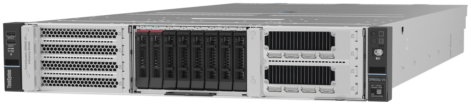 Lenovo представила серверы для ИИ-инференса: ThinkSystem SR675i V3/SR650i V4 и ThinkEdge ThinkEdge SE455i V4Lenovo представила новые серверные системы серии Lenovo Hybrid AI Advantage, оптимизированные для ИИ-инференса: ThinkSystem SR675i V3, ThinkSystem SR650i V4 и ThinkEdge SE455i V4. Если ранее акцент делался на решениях для обучения всё более производительных ИИ-моделей, то теперь бизнес обращает всё больше внимания на продукты для инференса. Новинки предлагаются параллельно с ПО для оптимизации инференса — для унификации и получения данных из разных источников для использования ИИ-моделями. Флагманской версией серии является ThinkSystem SR675i V3 в исполнении 3U на платформе AMD EPYC Turin 9535 (64C/128T, 2,4 ГГц, TDP 300 Вт). Сервер получил 1,5 Тбайт DDR5-6400 (24 × 64 Гбайт). За хранение данных отвечают до двух E3.S NVMe SSD по 3,84 Тбайт (PCIe 5.0 x4) и до двух M.2 NVMe SSD по 960 Гбайт (PCIe 4.0 x4). Возможна установка восьми ускорителей NVIDIA RTX PRO 6000 Blackwell Server Edition, а также пяти DPU NVIDIA BlueField-3 (4 × 400G, 1 × 200G). IPMI в данной модели не доступен. Для карт расширения доступно до шести слотов PCIe 5.0 х16 и один слот OCP 3.0 x8/x16. За питание отвечают четыре блока Titanium второго поколения (по 2300 Вт), а за охлаждение — пять вентиляторов. ThinkSystem SR650i V4 позиционируется в качестве системы для для инференса и корпоративных рабочих нагрузок. Этот 2U-сервер получил два Intel Xeon Granite Rapids-SP 6530P (32C/64T, 2,3 ГГц, TDP 225 Вт), 512 Гбайт DDR5-6400 (8 × 64 Гбайт), два ускорителя RTX PRO 6000 Blackwell Server Edition. За хранение отвечают два 3,84-Тбайт U.2 NVMe SSD (PCIe 5.0 x4), хотя всего таких слотов восемь, а также RAID1-массив из пары 960-Гбайт M.2 SATA SSD. Всего доступно шесть слотов расширения PCIe 5.0 x16 и два слота OCP 3.0 x8/x16. Имеется двухпортовый 25GbE-адаптер Broadcom 57414 (SFP28). За питание отвечают два Titanium-блока мощностью 2700 Вт каждый, а за охлаждение шесть вентиляторов, но есть и опция установки фирменной СЖО Neptune. Наконец, Lenovo ThinkEdge SE455i V3 (2U) глубиной всего 440 мм представляет собой компактную модель, предназначенную для периферийного инференса — в ретейле, телекоммуникациях и промышленности. Сервер имеет защищённую конструкцию и может работать при температурах от -5 до +40 °C. Сервер построен на базе одного процессора AMD EPYC Embedded 8534P (64C/128T, 2,3 ГГц, TDP 200 Вт), дополненного 576 Гбайт DDR5-4800 (6 × 96 Гбайт) и двумя ускорителями NVIDIA L4 24 Гбайт (PCIe 4.0 x16). В комплекте идёт один 3,84-Тбайт NVMe SSD и один 960-Гбайт SATA SSD. Имеется два блока питания Platinum второго поколения с возможностью горячей замены. Для карт расширения есть до двух слотов PCIe 5.0 x16 и до четырёх слотов PCIe 4.0 x8, а также один слот OCP 3.0 (PCIe 5.0 x16). Установлен двухпортовый OCP-адаптер Broadcom 57416 (10GbE). IPMI отключён. Фактически компания предлагает готовые конфигурации, которые можно переконфигурировать лишь слегка, чаще всего добавив накопители и/или сетевые адаптеры. Платформы будут доступны в рамках подписки TruScale. Также компания анонсировала новые сервисы Hybrid AI Factory Services, в том числе консультации по инференсу, которые помогают развёртывать оборудование и управлять им для оптимизации ИИ-производительности.